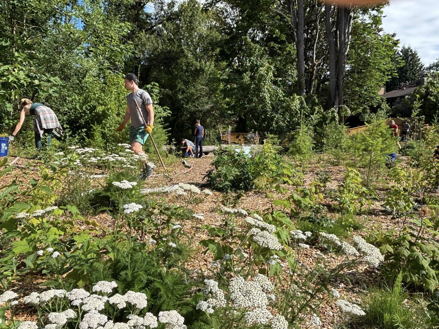 Volunteers gathered all summer long to water and weed our Miyawaki Forest.